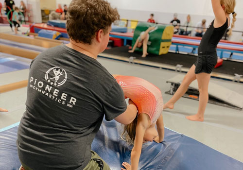Our GOAL at Pioneer Gymnastics Academy is to TEACH children of all ages and ability levels the sport of gymnastics in a SAFE, ENERGETIC and FUN environment. We believe that the best way to teach and encourage young athletes is by positive reinforcement balanced with structure and discipline to ensure everyone’s safety. We also recognize that each child is a unique individual and should be taught in a manner that is most conducive to their learning and skill ability.